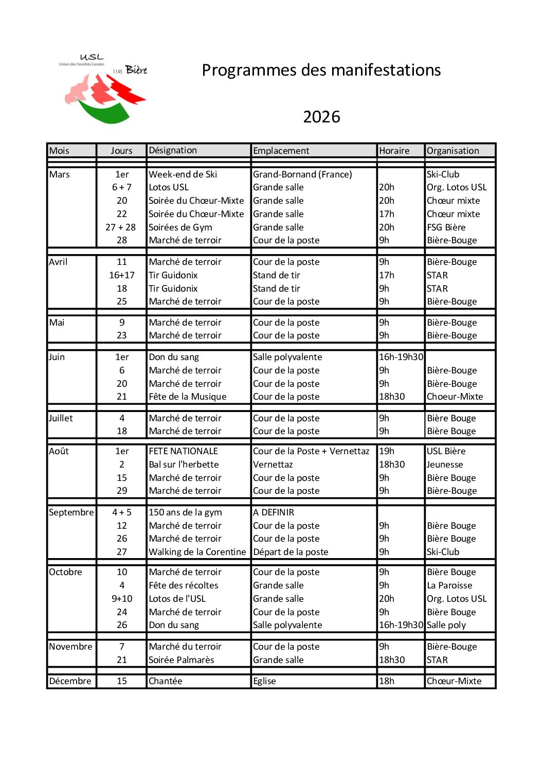 Agenda et manifestations
