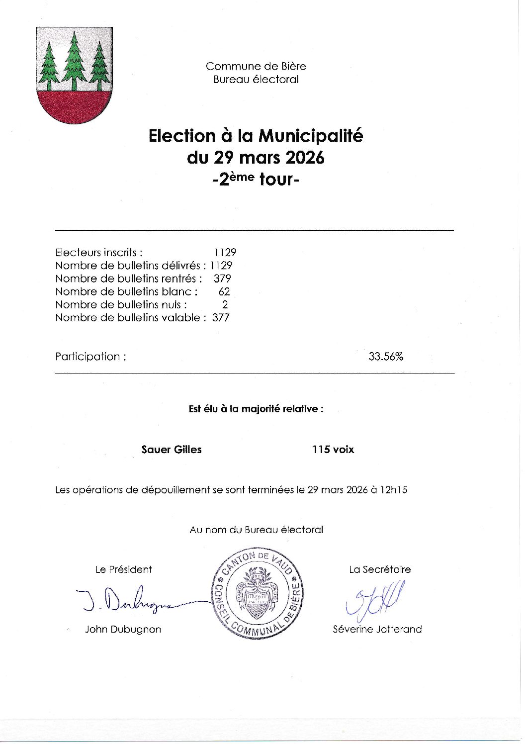 29 mars 2026 2ème tour élection Conseil d’Etat, 2ème tour élection Municipalité