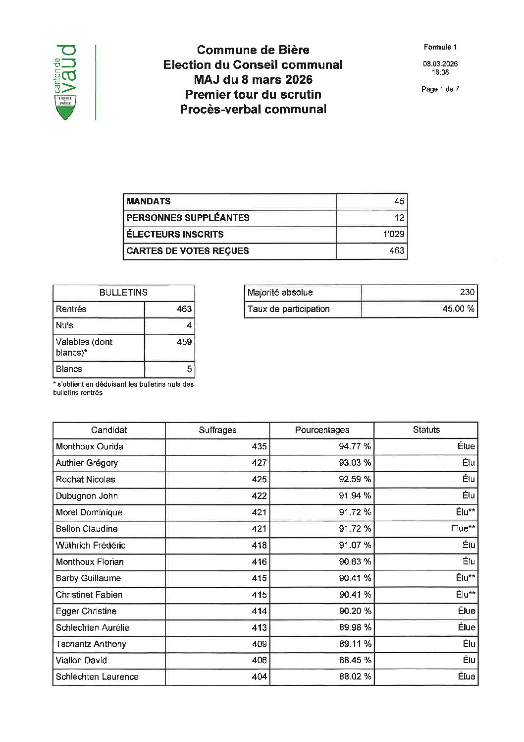 8 mars 2026 ELECTIONS COMMUNALES